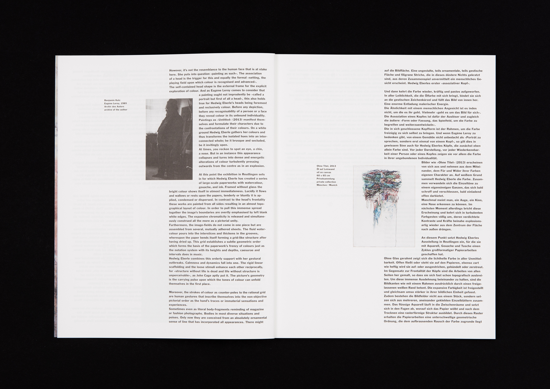 Für ihre erste institutionelle Einzelausstellung hat Hedwig Eberle einen Zyklus großformatiger Papierarbeiten geschaffen. Der Katalog entstand für die Ausstellung im Kunstverein Reutlingen und erschien im Wasmuth-Verlag.